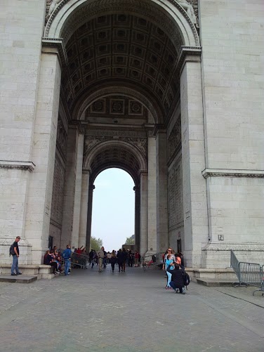 Después de ese energizante desayuno empezamos nuestra travesía hasta el Arco del Triunfo, nos tomamos un bus hasta Champs Elisees… ¡Había muchísima gente por todos lados! Nos costó encontrar un poco la entrada (El Arco del Triunfo tiene la peculiaridad de que está rodeada por avenidas, y el mismo arco está en una rotonda, por lo que tenés que llegar a través de una entrada subterránea) pero lo logramos. El arco del triunfo no se parecía ni un poco a lo que me había imaginado, ¡es gigante! En la superficie, debajo del arco se encuentra la tumba al soldado desconocido, al cual ese domingo que nos fuios le rindieron homenaje.