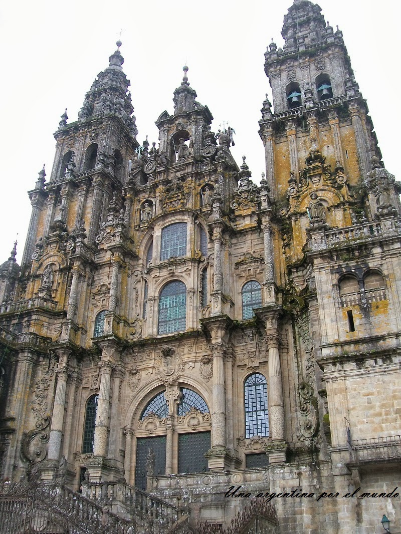 Caminamos un poco hasta la Catedral de Santiago. Me quedé sin aliento, ¡Es hermosa! Sin desmerecer a ninguna catedral, para mí es una de las más lindas que vi hasta ahora. Le da vuelta y media a la Catedral de Notre Dame (jajaja no me peguen pero es muy cierto) La Catedral de Santiago se empezó a construir en el 1075 y se terminó casi 200 años después, en 1211. Se dice que en los sepulcros de la Catedral descansan los restos de Santiago (no sé si será realmente él, pero he pasado por allí) También se dice que si tocas la cabeza de la imagen de Santiago y pides un deseo, éste se cumple. Yo pedí volver a Galicia con mi papá y parece que está en vías de cumplirse, así que no hay dudas por mi parte.