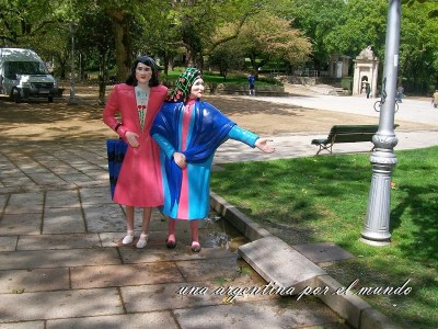 Al día siguiente fuimos a Santiago. Visitamos una plaza cuyo nombre lamentablemente no recuerdo el Parque de la Alameda, (¡Estoy buscando en Google como loca pero no lo encuentro!) (Las Dos Marías me dieron la pista para encontrarlo) donde anteriormente se vendían las cosas traídas del campo y luego iban a la ciudad a comprar zapatos, ropa, lo que necesitasen. En esa plaza hay un banco acústico: es un banco de piedra enorme que tiene forma semicircular, donde cuentan que en la época de Franco los enamorados se sentaban uno en una punta, otro en otra y se contaban confidencias gracias a la acústica del banco. Si hablás cerca de la piedra del respaldo se puede escuchar todo lo que decís del otro lado (completamente comprobado por mí misma, mi primo de un lado, yo del otro ¡y ahí conversando lo más tranquilos gracias al banco mágico!)