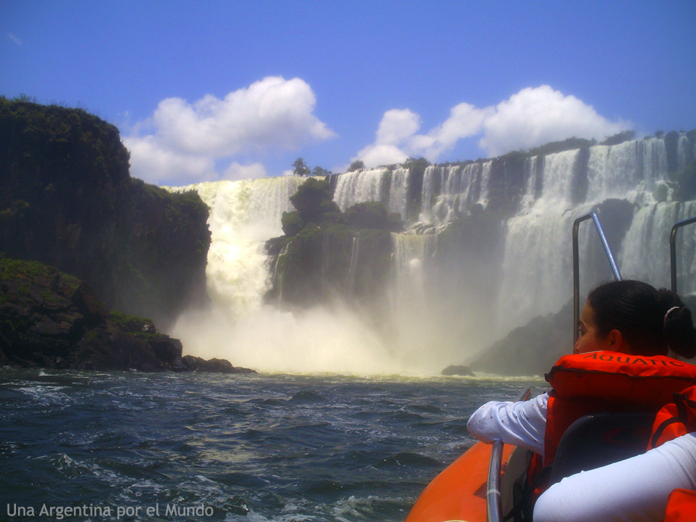 Seguimos camino recorriendo el resto de las pasarelas, y aproveché para realizar una actividad extra que valió mucho la pena. Me subí a un gomón para navegar por las cataratas y tenerlas ahí nomás, cerquita. Pasamos por varias cascadas, ¡e incluso nos metimos dentro de una!